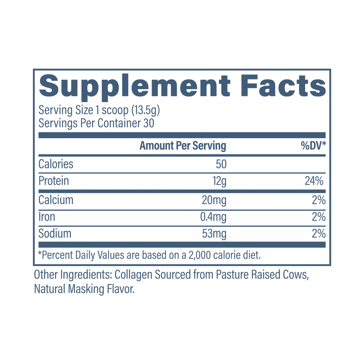 - Collagen Source – Bovine collagen peptides derived from pasture-raised, grass-fed cows